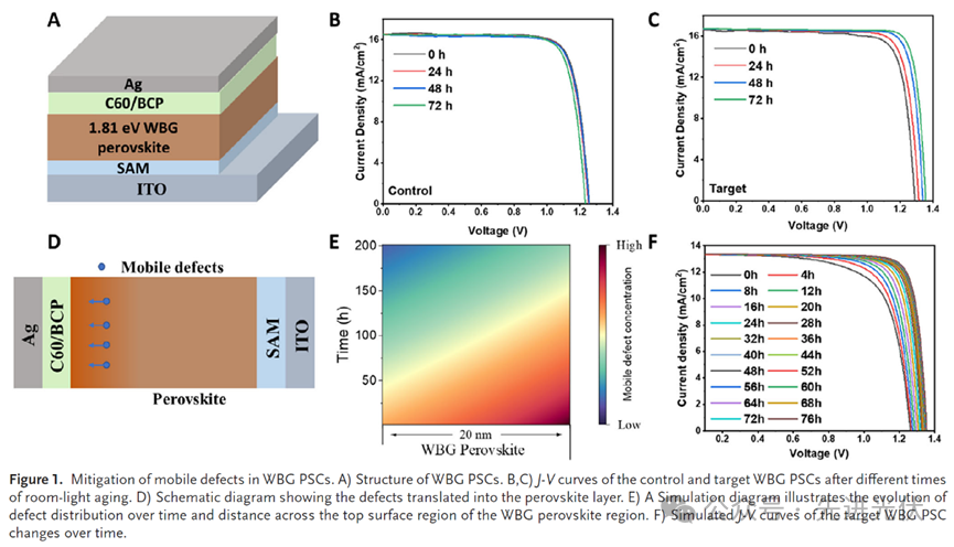 1.缺陷动态钝化策略:创新性地利用“老化后处理”机制,使钝化剂能够捕获并修复从体相迁移至表面的移动缺陷,从而持续提升器件性能。