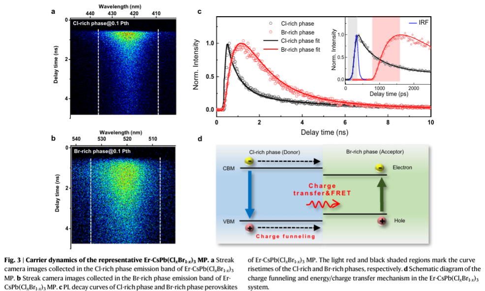 - 首次在镧系掺杂钙钛矿中同步实现“相分离”与“相钉扎”,有效抑制了卤素离子迁移,显著提升了材料的光稳定性与结构稳定性。