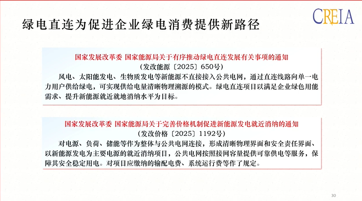 充分发挥市场机制促进新能源科学规划和有效消纳——《关于促进新能源消纳和调控的指导意见》解读截至2024年底,全国风电和太阳能发电合计装机容量已达到14亿千瓦,提前实现了2030年发展目标。因此,拓展多层次新能源消纳市场化体系,充分发挥市场机制的作用,保障新型电力系统的实时电力平衡、安全稳定和经济运行,有助于促进新能源消纳和发展,支撑新型电力系统建设。此外,新能源就近消纳从电力系统整体经济性而言是最佳方式。