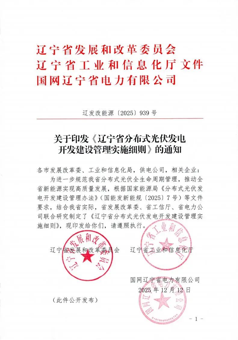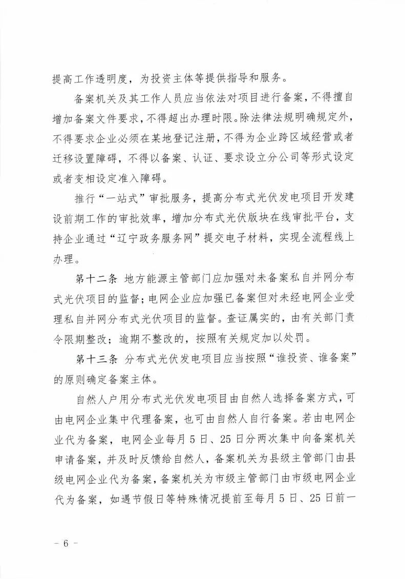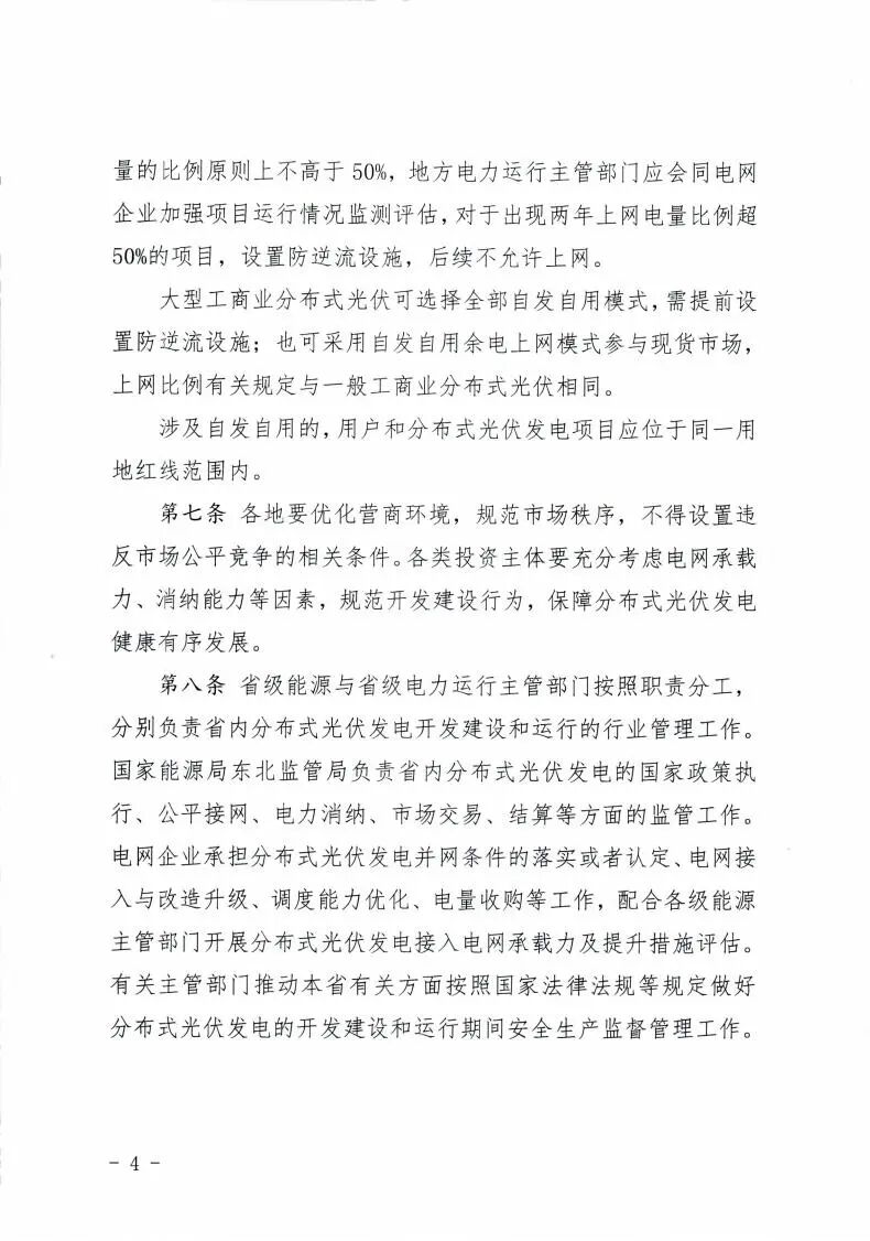 辽宁分布式光伏开发建设细则:工商业上网比例最高50%