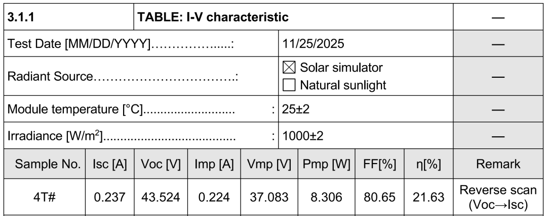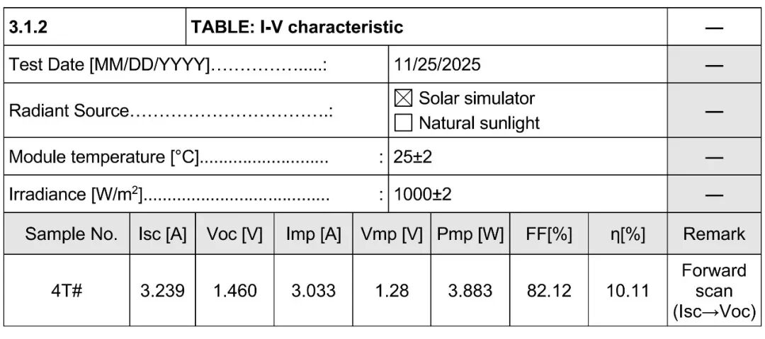 近日,经TÜV南德认证,仁烁光能自主研发的钙钛矿/晶硅叠层组件光电转换效率突破至31.7%(认证面积384.02 cm²),刷新该尺寸四端叠层组件效率世界纪录。