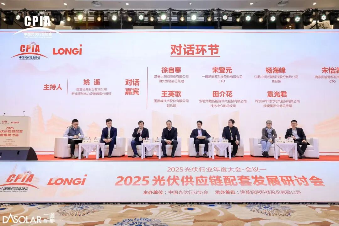 12月17-18日,由中国光伏行业协会主办的2025光伏行业年度大会在陕西西安启幕,来自光伏企业领袖、行业资深专家、政府部门、行业组织、金融机构、高等院校专家学者,聚焦光伏行业创新突围、产业链协同共赢、高质量发展等议题展开深度探讨和交流。一道新能CTO宋登元博士受邀出席,并在2025光伏供应链配套发展研讨会环节参加光伏供应链领航企业家对话,系统阐释了企业如何通过技术升级与生态构建,呼吁要打破零和、负和博弈的思维局限,以正和博弈思路引领光伏行业发展,促进全产业链协同协作,实现产业生态的共生共荣,实现质量与价值的双重提升。