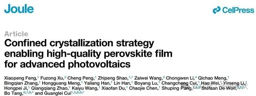X. Feng, F. Xu,C, Peng, et al. Confined crystallization strategy enabling high-quality perovskite film for advanced photovoltaics. Joule, 10, 102228, 2025, In press.