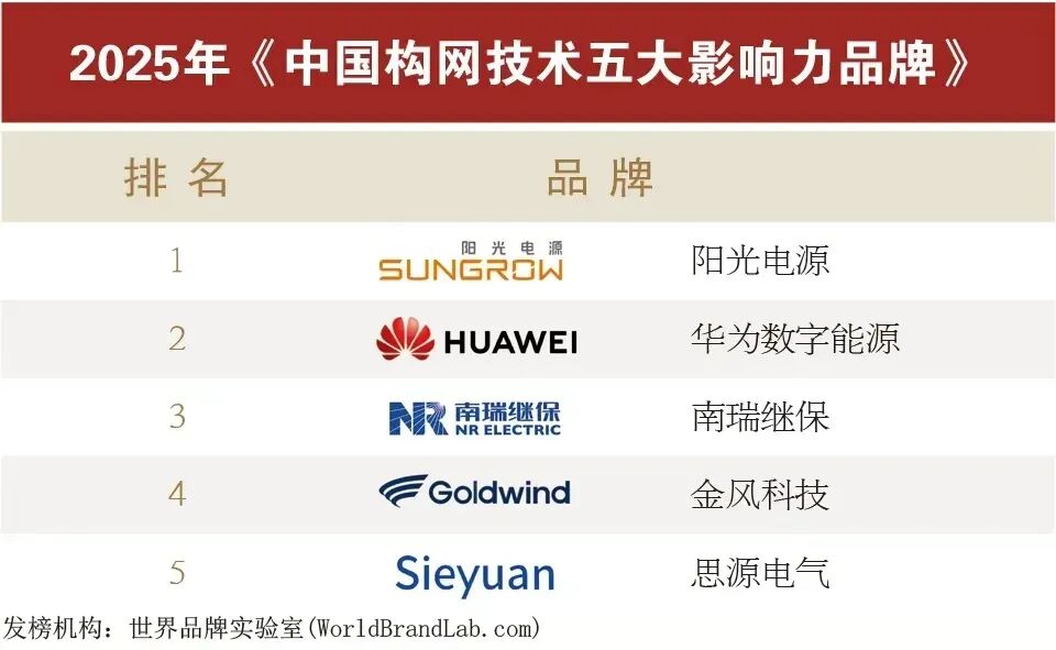 近日,经世界品牌实验室 (World Brand Lab)及其独立的评选委员会测评,阳光电源荣获“中国构网技术五大影响力品牌”。