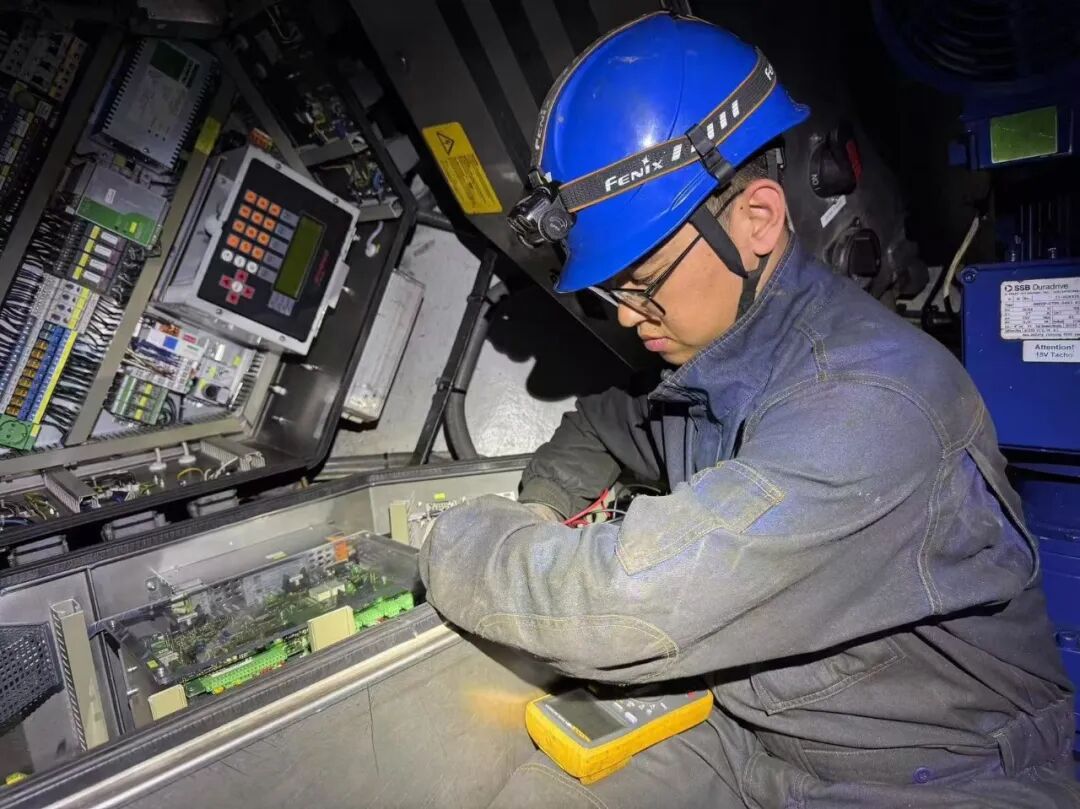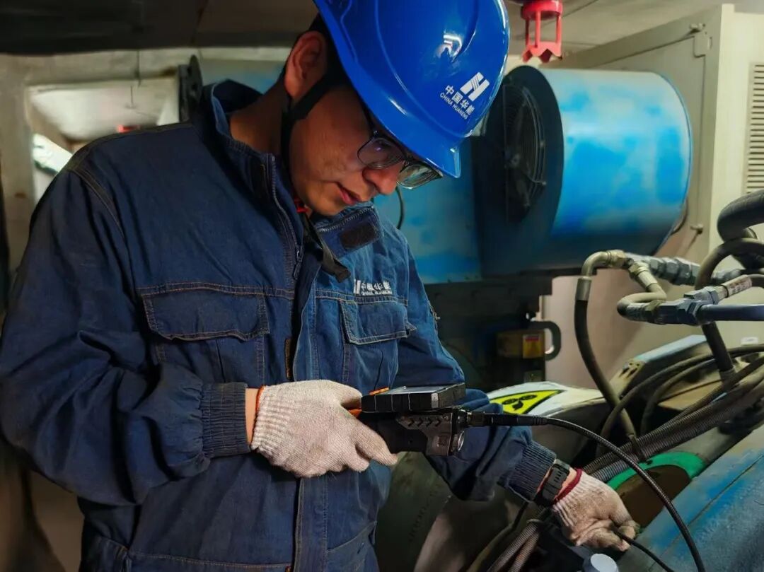 虞学鹏利用内窥镜检查风机齿轮箱磨损情况