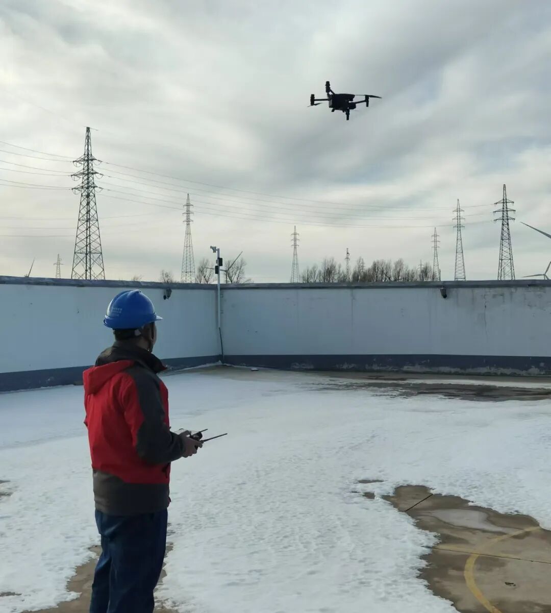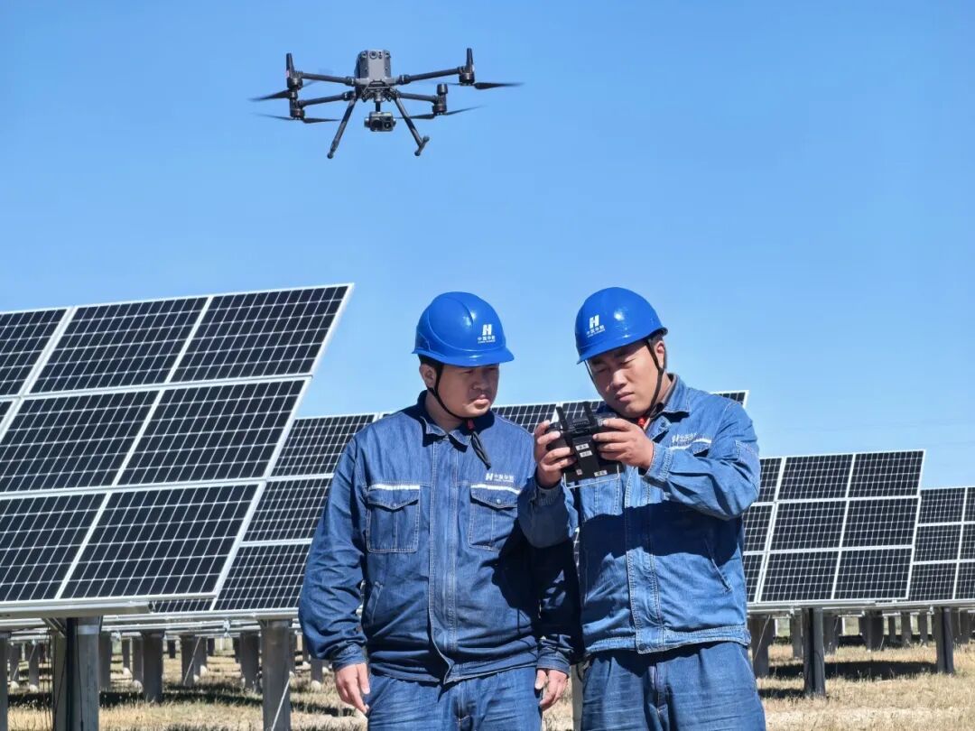 姜仕玉带领徒弟用无人机开展光伏板热斑巡检排查工作