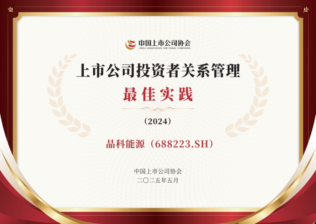 回顾2025年,面对充满挑战的外部环境和激烈的行业竞争,晶科能源(688223.SH)不断自我突破、修炼内功,在包括董事会治理、投资者关系维护与ESG等多个方面屡创佳绩,蝉联多个权威奖项,得到资本市场的广泛赞誉。