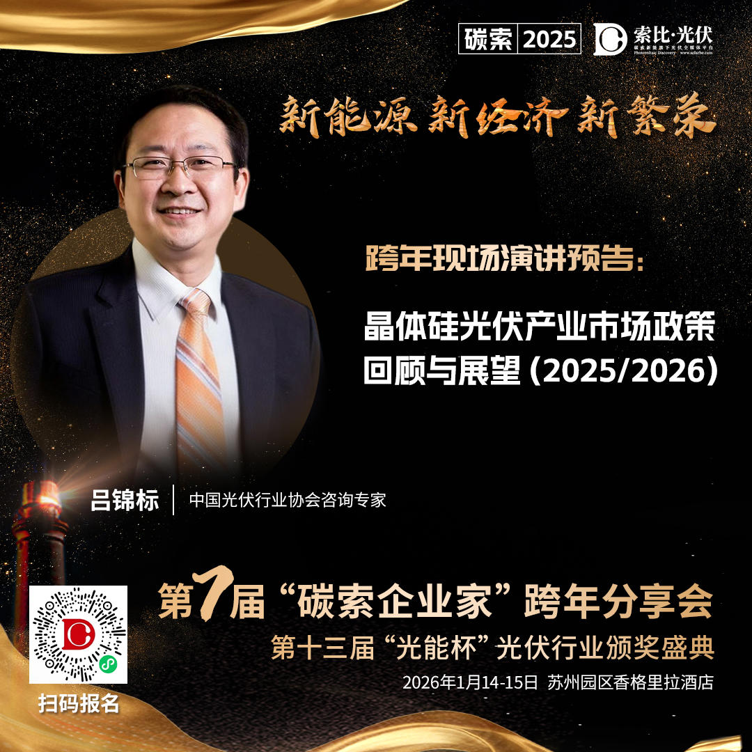 中国光伏行业协会咨询专家吕锦标将在跨年现场进行《晶体硅光伏产业市场政策回顾与展望(2025/2026)》报告演讲,扫描下方二维码即可参与报名。