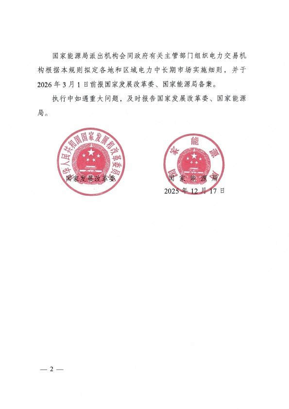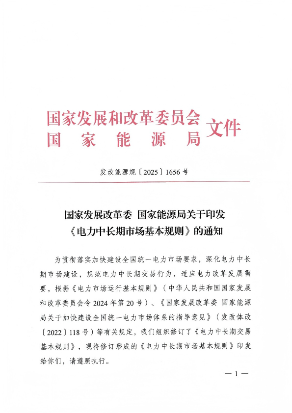 近日,国家发展改革委、国家能源局发布关于印发《电力中长期市场基本规则》的通知(发改能源规〔2025〕1656号),其中提到,除执行政府定价的电量外,电力中长期市场的成交价格应当由经营主体通过市场形成,第三方不得干预。