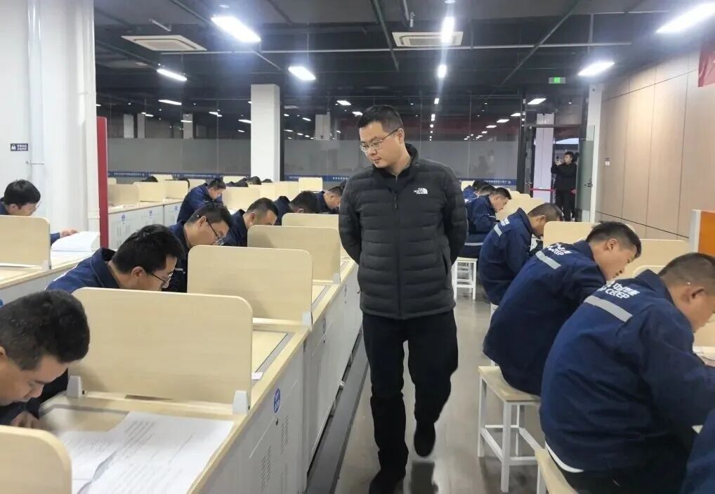 本次技能考核理论考试环节采用机考形式,内容涵盖安全生产管理、光伏电站运维、电气一二次系统知识及“两个细则”等方面,题型包括单选、多选、简答、论述分析及计算等,全面考察运维人员的专业理论水平。考场上,选手们认真审题、沉着作答,充分展现了严谨务实的工作作风。