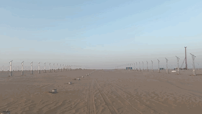 项目目前已完成全部桩基础施工,主索张拉和组件安装正紧张进行中。作为HYPSET首个大规模应用索结构柔性光伏支架系统的沙漠电站项目,公司将为光伏治沙贡献独特经验。