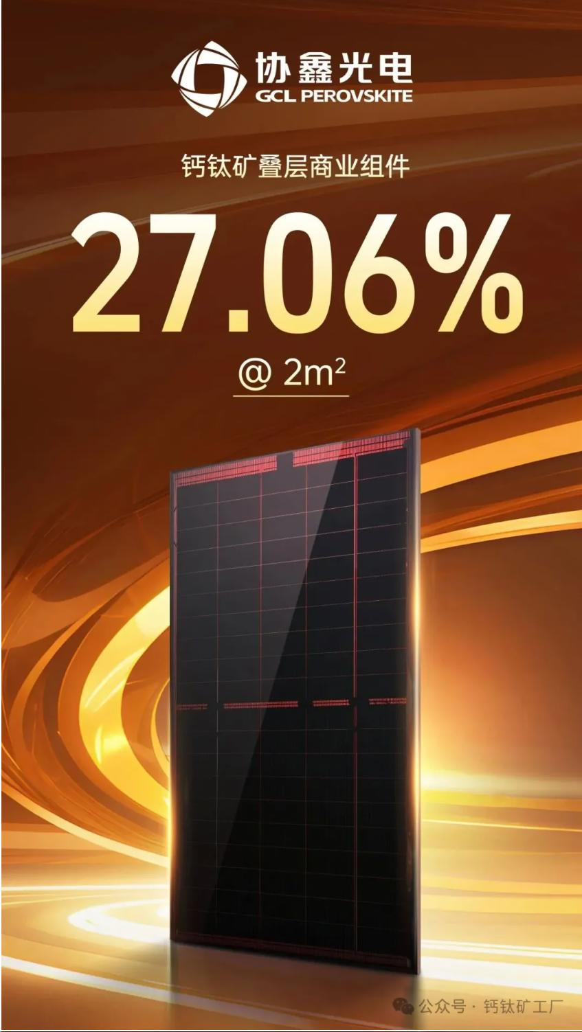 近日,协鑫光电自主研发的2㎡钙钛矿—晶硅叠层组件,光电转换效率突破至27.06%,经国际权威认证机构TÜV南德认证。这一突破不仅刷新该尺寸四端叠层组件效率世界纪录,且具划时代的经济学意义——在钙钛矿产业化日趋成熟的背景下,27%被视为叠层技术超越晶硅单结电池的“价值红线”。跨越这道红线,意味着发电效益将彻底覆盖并抵消新增成本。此次突破标志着钙钛矿叠层组件的度电成本(LCOE)已开始下穿传统晶硅,跨入“商业平价”的新纪元。