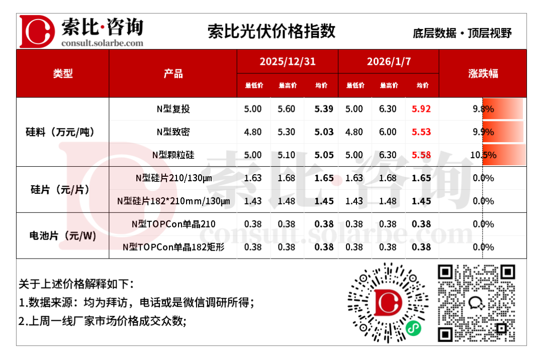 1、数据均为索比咨询整理,价格为均价,有疑问请联系我们,欢迎探讨