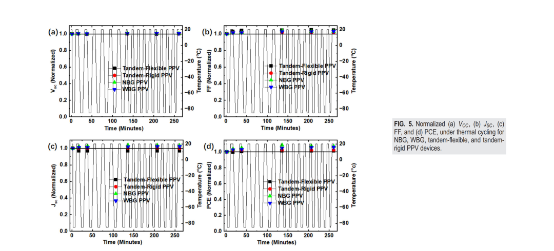 经过16次+20℃至-85℃的冷热循环(模拟昼夜交替),四类器件的开路电压、短路电流密度、填充因子及光电转换效率均未出现明显衰减,显示出卓越的环境适应性与可靠性。