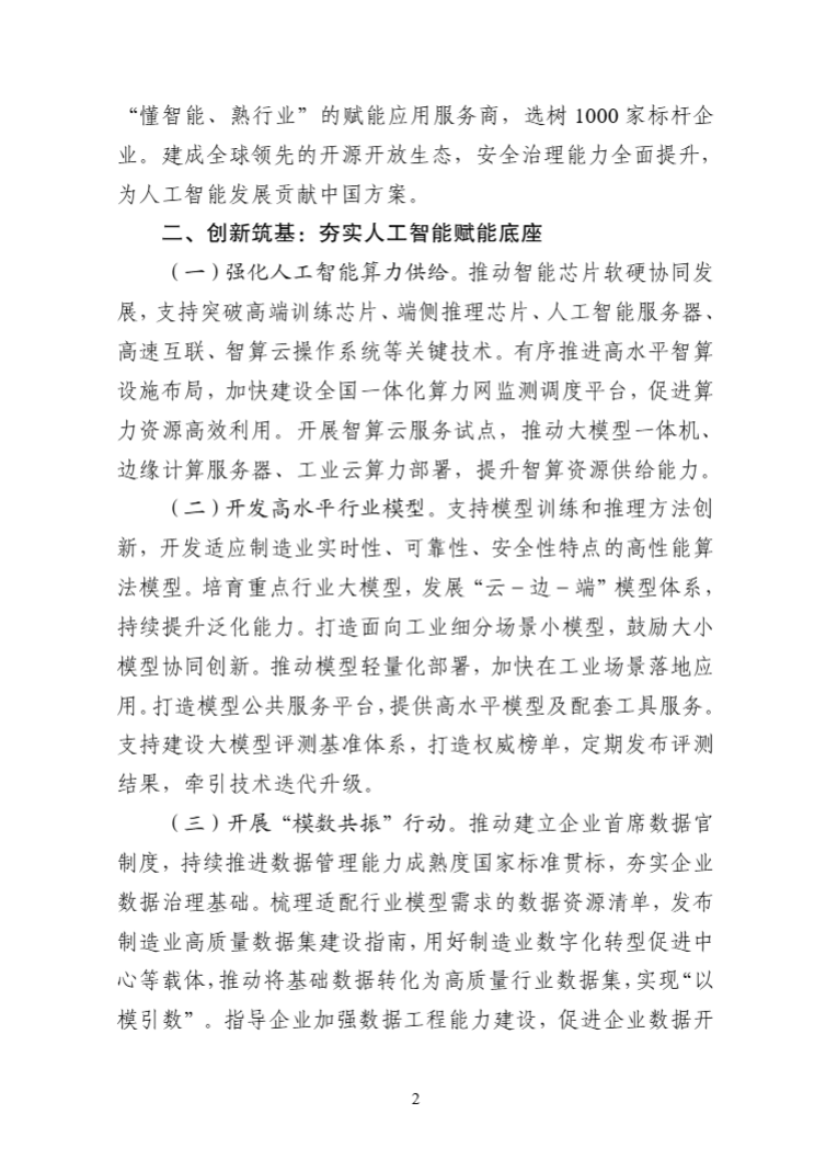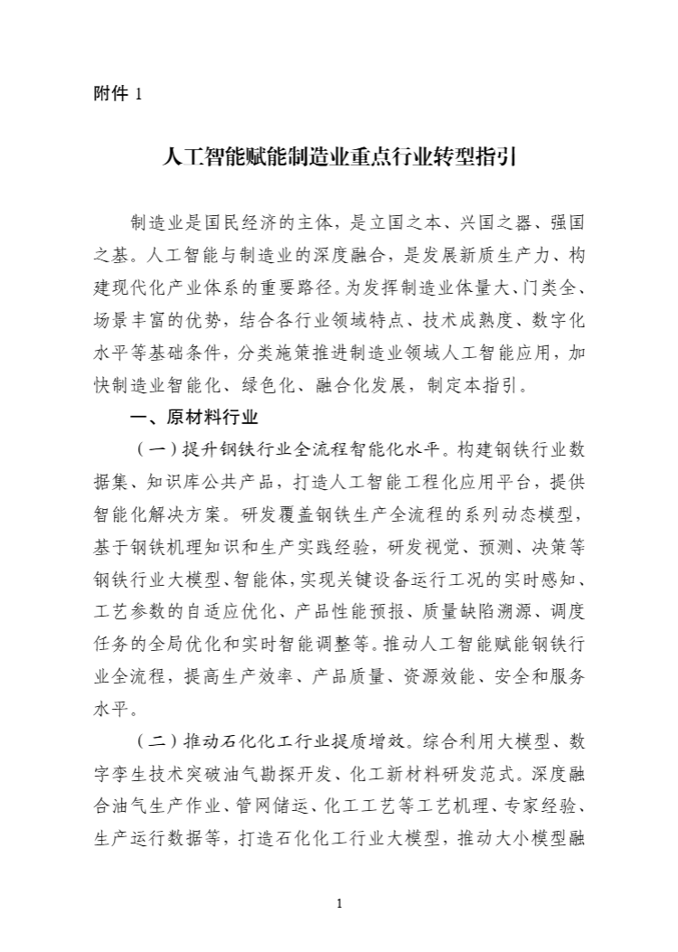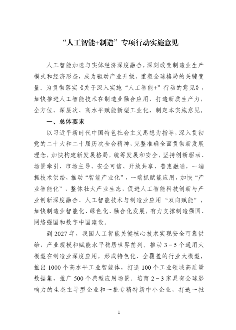“人工智能+制造”专项行动实施意见
