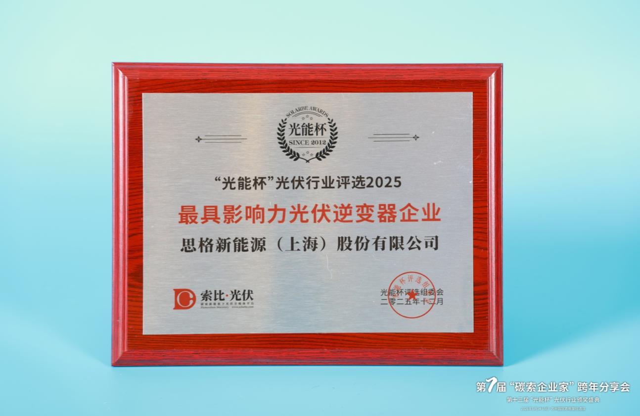 本届“光能杯”共有300余家光伏企业参与报名评选,角逐年度荣誉。此次颁奖盛典中,思格新能源(上海)股份有限公司凭借强大创新力、出色的品质与服务、卓越的品牌影响力,荣膺2025年度最具影响力光伏逆变器企业。