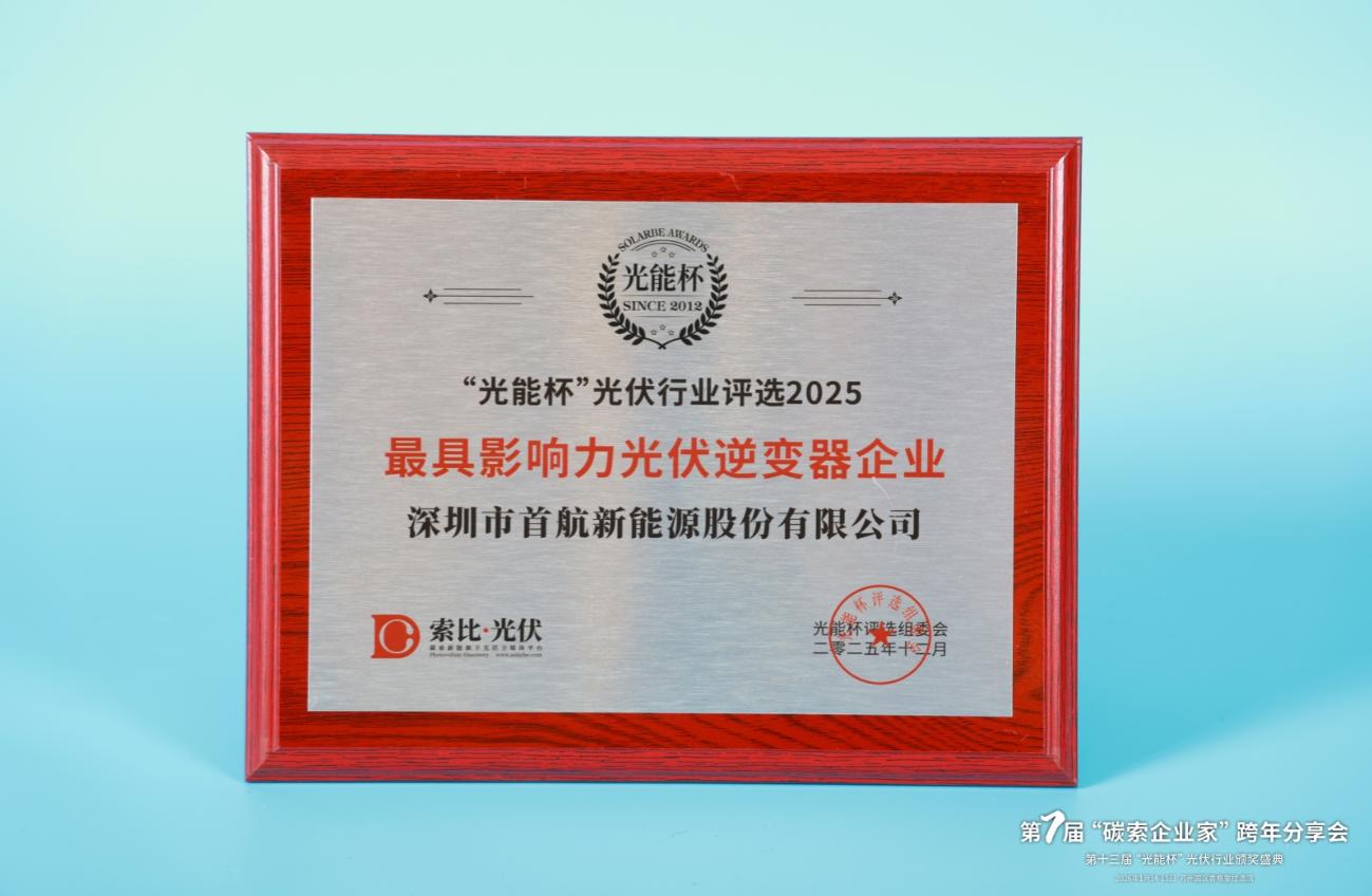 本届“光能杯”共有300余家光伏企业参与报名评选,角逐年度荣誉。此次颁奖盛典中,深圳市首航新能源股份有限公司凭借强大创新力、出色的品质与服务、卓越的品牌影响力,荣膺2025年度最具影响力光伏逆变器企业。