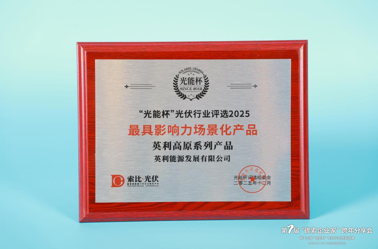 本届“光能杯”共有300余家光伏企业参与报名评选,角逐年度荣誉。此次颁奖盛典中,英利能源发展有限公司凭借强大创新力、出色的品质与服务、卓越的品牌影响力,荣膺2025年度最具影响力场景化产品。