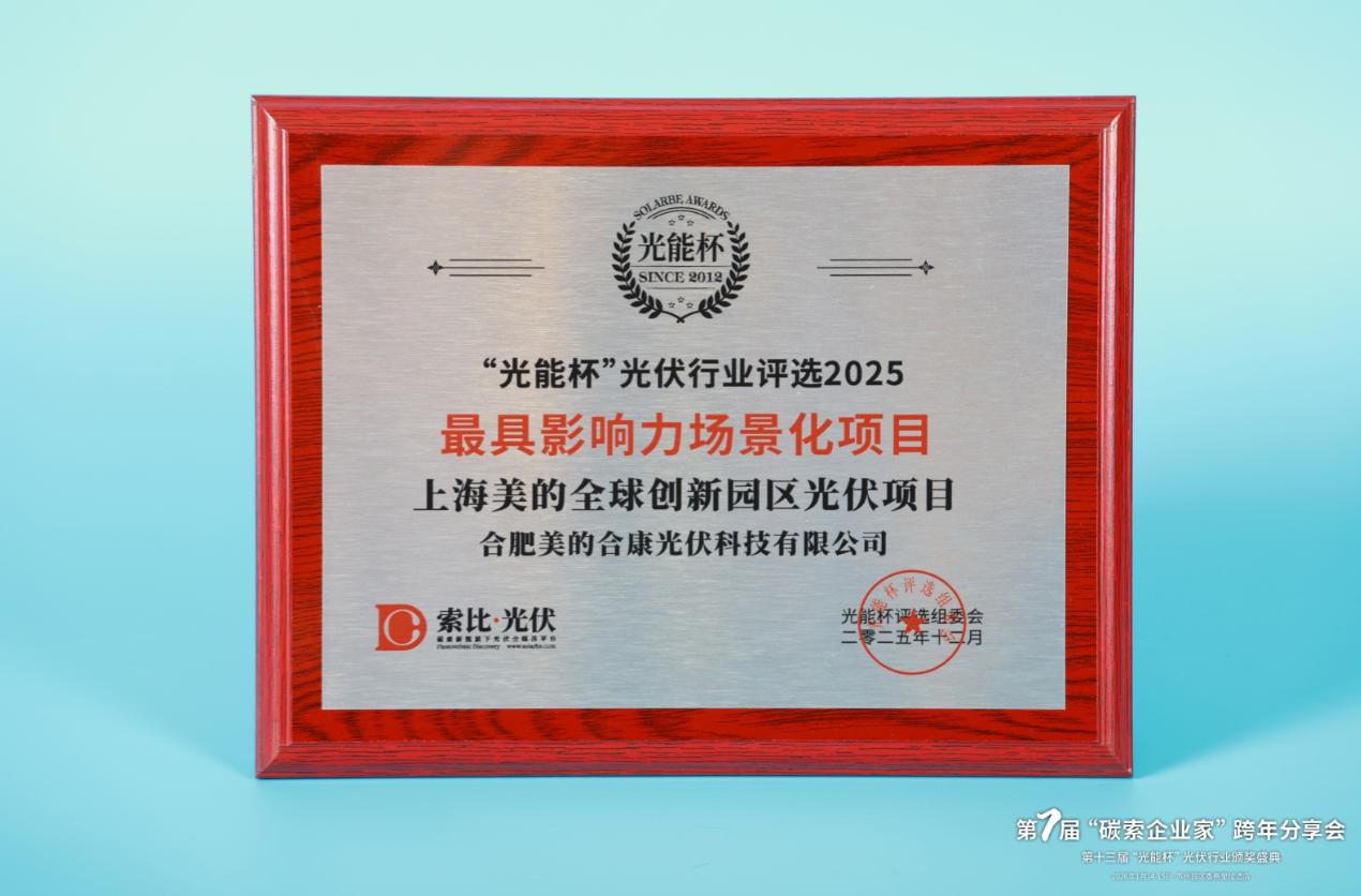 本届“光能杯”共有300余家光伏企业参与报名评选,角逐年度荣誉。此次颁奖盛典中,合肥美的合康光伏科技有限公司凭借强大创新力、出色的品质与服务、卓越的品牌影响力,荣膺2025年度最具影响力场景化项目。