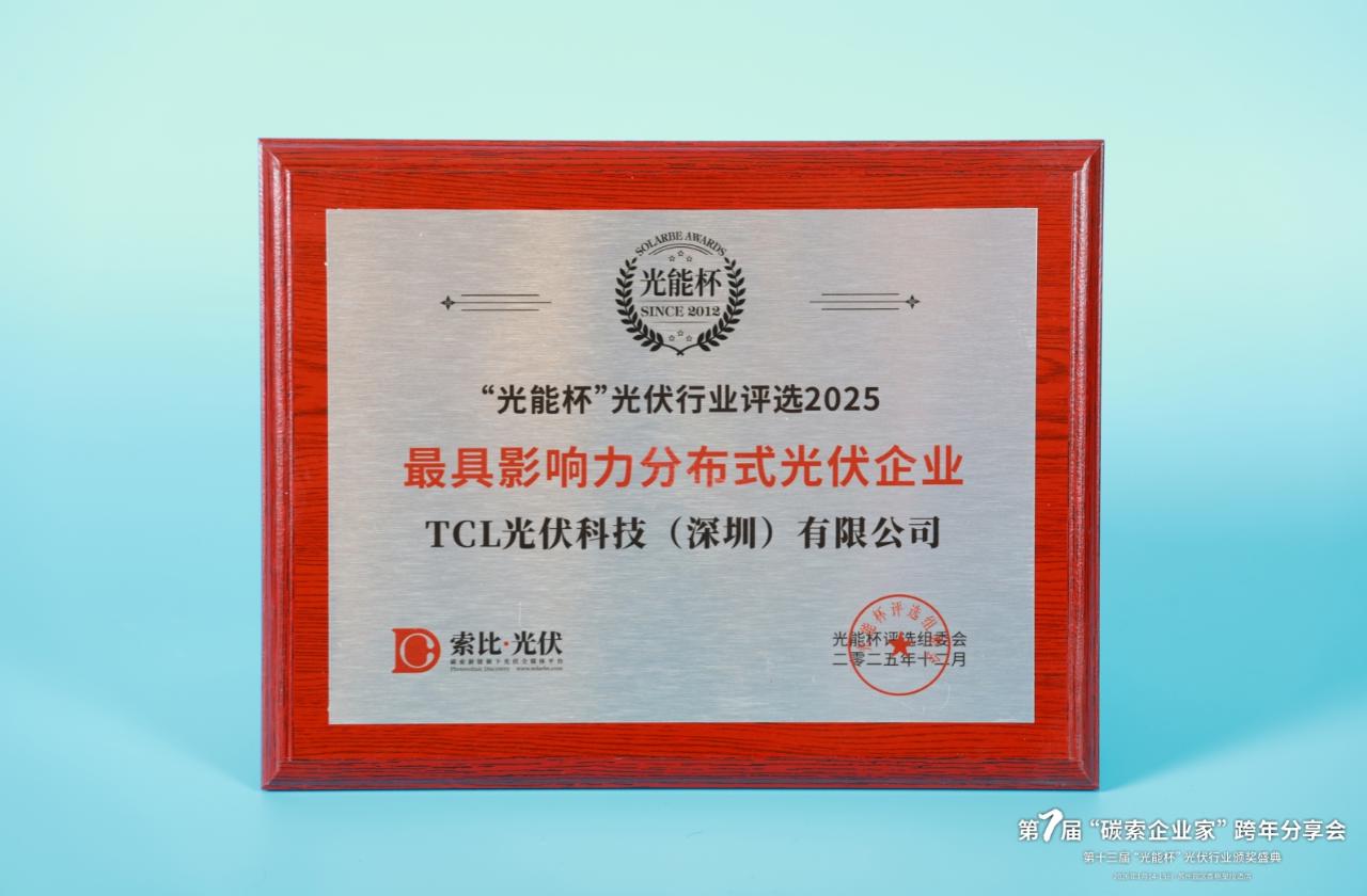 本届“光能杯”共有300余家光伏企业参与报名评选,角逐年度荣誉。此次颁奖盛典中,TCL光伏科技(深圳)有限公司凭借强大创新力、出色的品质与服务、卓越的品牌影响力,荣膺2025年度最具影响力分布式光伏企业。