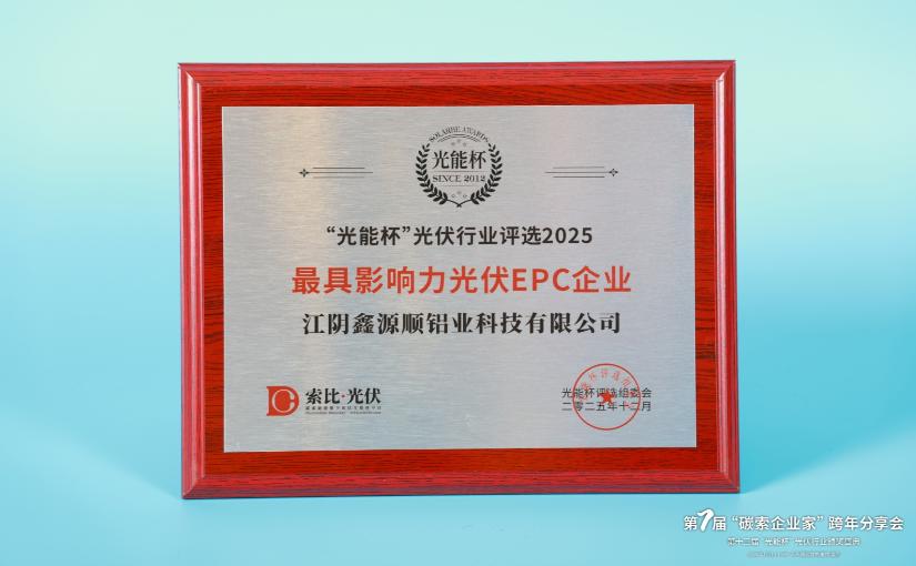 本届“光能杯”共有300余家光伏企业参与报名评选,角逐年度荣誉。此次颁奖盛典中,江阴鑫源顺铝业科技有限公司凭借强大创新力、出色的品质与服务、卓越的品牌影响力,荣膺2025年度最具影响力光伏EPC企业。