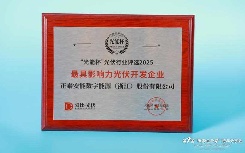本届“光能杯”共有300余家光伏企业参与报名评选,角逐年度荣誉。此次颁奖盛典中,正泰安能数字能源(浙江)股份有限公司凭借强大创新力、出色的品质与服务、卓越的品牌影响力,荣膺2025年度最具影响力光伏开发企业。