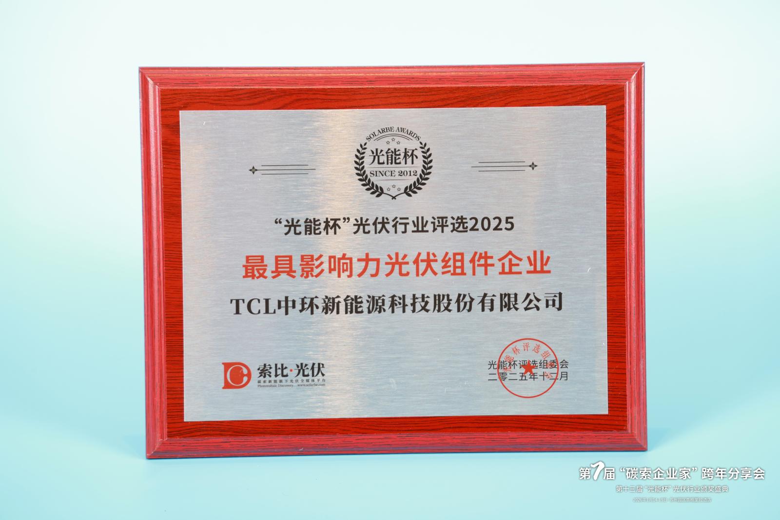 本届“光能杯”共有300余家光伏企业参与报名评选,角逐年度荣誉。此次颁奖盛典中,TCL中环新能源科技股份有限公司凭借强大创新力、出色的品质与服务、卓越的品牌影响力,荣膺2025年度最具影响力光伏组件企业。