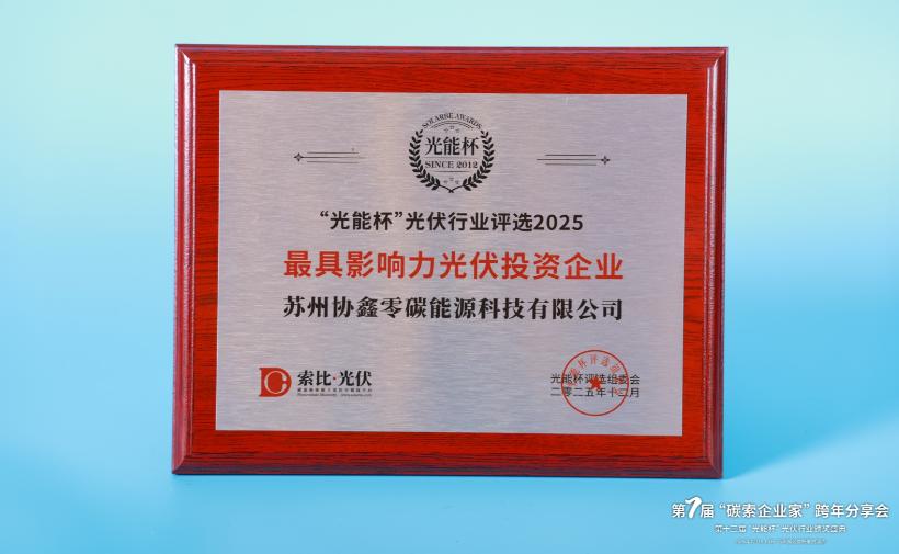 本届“光能杯”共有300余家光伏企业参与报名评选,角逐年度荣誉。此次颁奖盛典中,苏州协鑫零碳能源科技有限公司凭借强大创新力、出色的品质与服务、卓越的品牌影响力,荣膺2025年度最具影响力光伏投资企业。