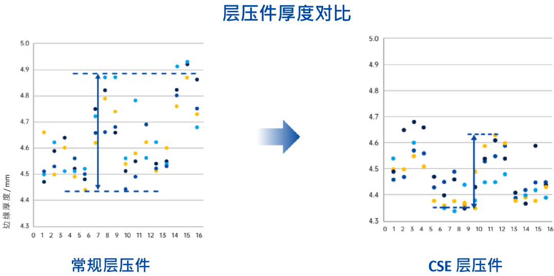 例如,CSE组合结构增强技术,系统性升级了组件结构和材料,有效改善了组件厚度均匀性和边缘密封性,使组件结构更致密、更均匀,抗湿热能力显著提升。经DH3000h测试,DeepBlue 5.0较常规组件功率衰减值降低达2%。