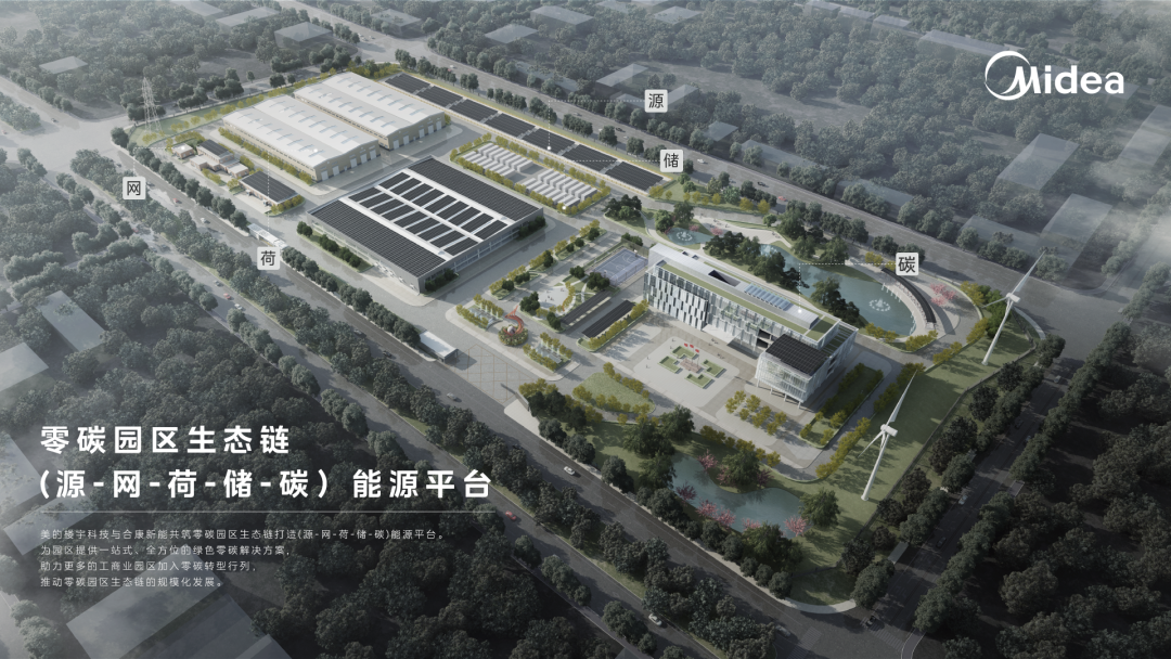 资料显示,合康新能美的新能源在工商业领域已落地近 200 个项目,覆盖航空航天、化学纤维制造、机器人自动化、智能制造等多个行业领域。针对园区消纳瓶颈、碳管理滞后等痛点,美的新能源联合美的楼宇科技创新推出零碳园区生态链(源-网-荷-储-碳)能源平台,从供能、输能、储能、用能到能源回收五大维度,提供一站式绿色零碳解决方案。针对客户需求,美的新能源推出 “能闪送” 金融模式,助力工商业客户以低成本快速实现绿色能源应用转型。同时,积极推动虚拟电厂聚合平台建设,通过能源数据实时监测与统一调控,助力园区实现高效用能。