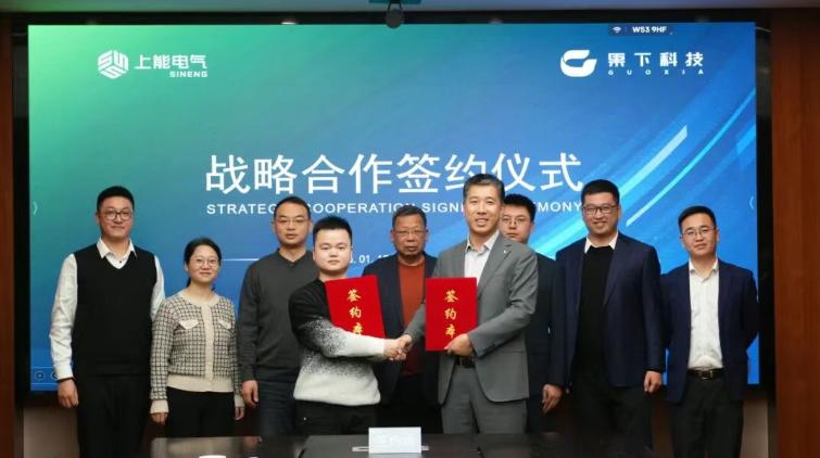 近日,上能电气股份有限公司(以下简称“上能电气”)与果下科技股份有限公司(以下简称“果下科技”)在上能电气总部签署战略合作协议。