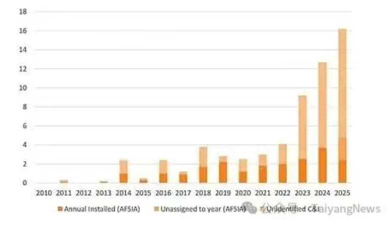 通过中国出口数据进行的“同类比较”显示,非洲已成为全球太阳能增长最快的地区。AFSIA 分析师强调:“这些新数据表明,虽然非洲在全球太阳能业务中仍只占一小部分,但其实际重要性是过去几年叙事所传达的 3 到 4 倍(全球产能占比从 2023-2025 年的 0.7% 提升至 2.6%)。”