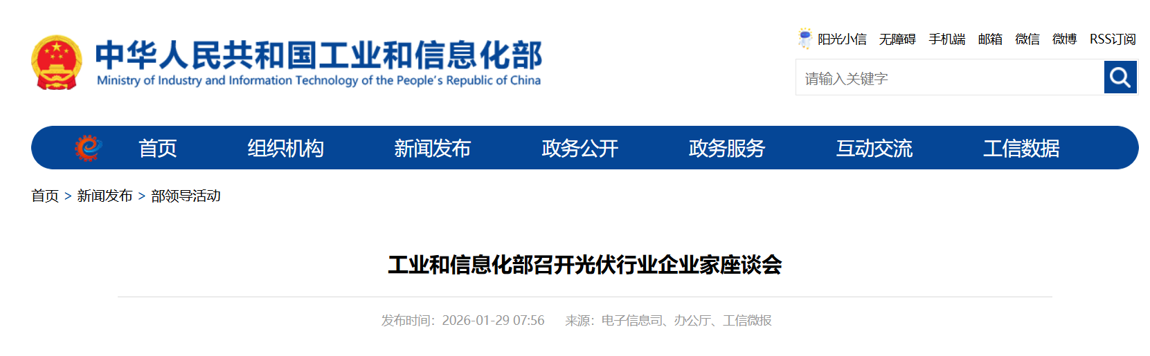 2026年1月28日下午,工业和信息化部党组书记、部长李乐成主持召开光伏行业企业家座谈会,深入贯彻落实党中央、国务院决策部署,听取重点企业及光伏行业协会对“反内卷”工作的意见建议,研究部署推进光伏行业治理工作。副部长熊继军出席会议。