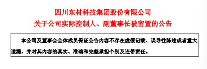 1月28日,四川东材科技集团股份有限公司发布公告称,公司于2026年1月27日收到高金技术产业集团有限公司(以下简称“高金集团”)通知,高金集团于近日收到四川省监察委员会签发的关于公司实际控制人、副董事长熊海涛女士被留置、立案调查的通知书。截至本公告披露日,公司未被要求协助调查。