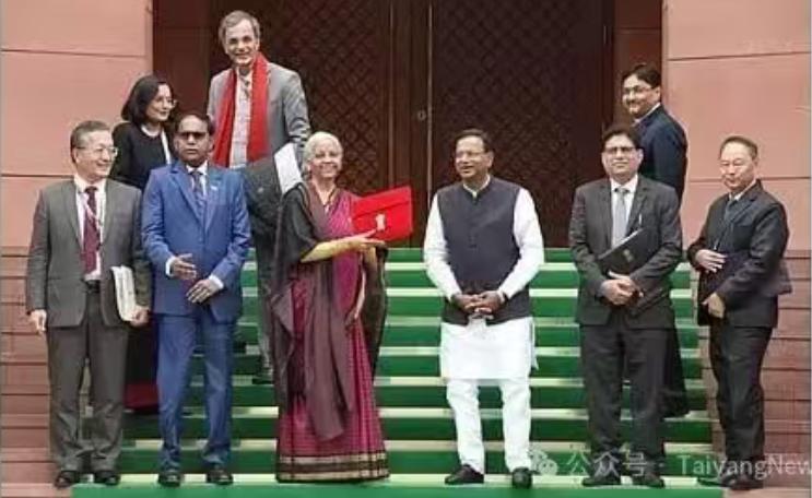 印度财政部长Nirmala Sitharaman(手持红文件夹)介绍了印度2026年联邦预算,重点关注太阳能和储能。(图片来源:Press Information Bureau)