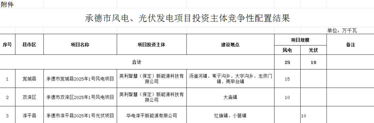 附件:承德市风电、光伏发电项目投资主体竞争性配置初选结果