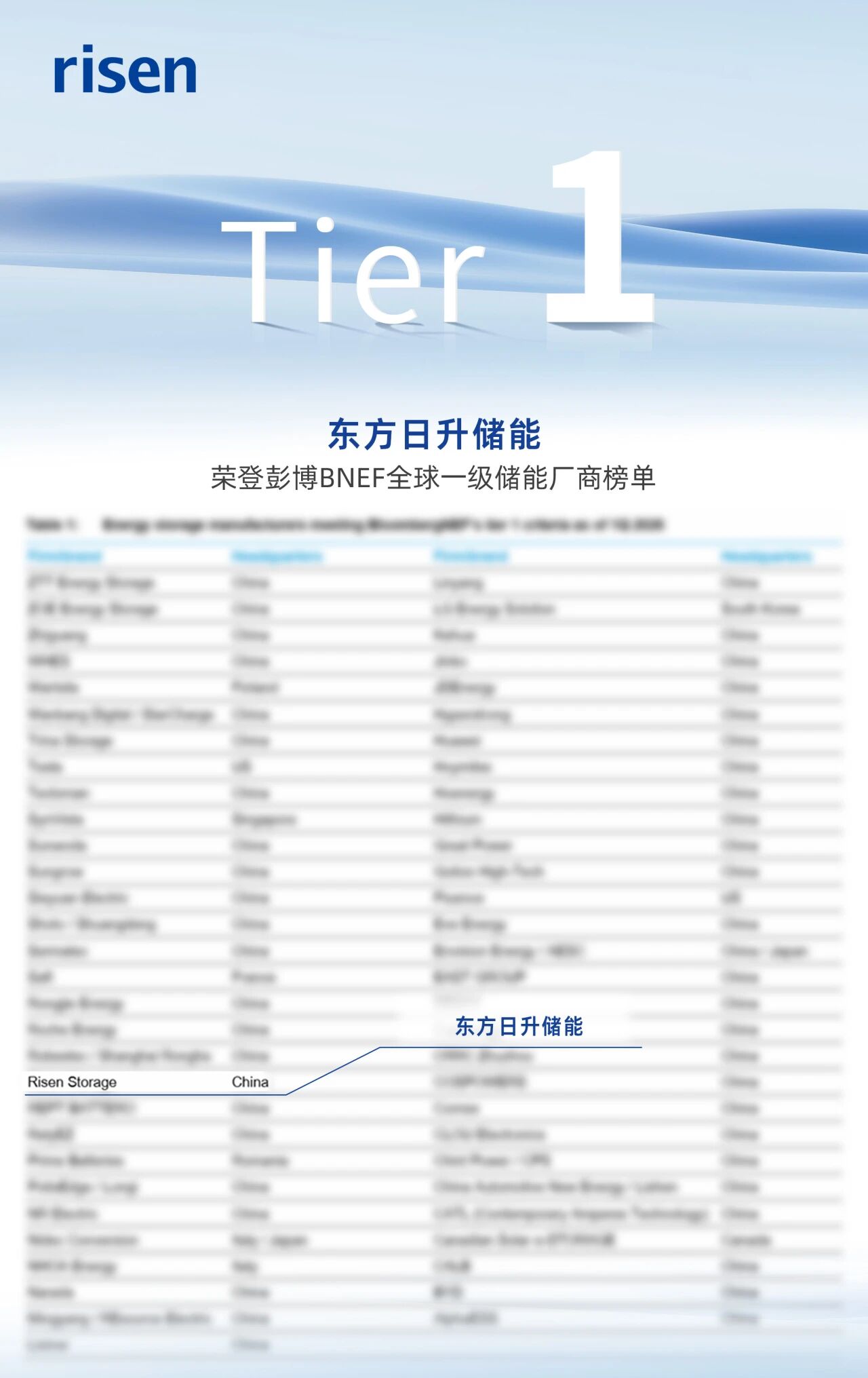彭博新能源财经(BloombergNEF)近日发布2026年第一季度全球储能系统制造商评级报告,东方日升储能再度跻身Tier 1厂商榜单。这一成果既是对公司在储能赛道技术积累、产品实力与市场竞争力的有力印证,更是国际权威机构对东方日升综合发展水平的充分肯定。