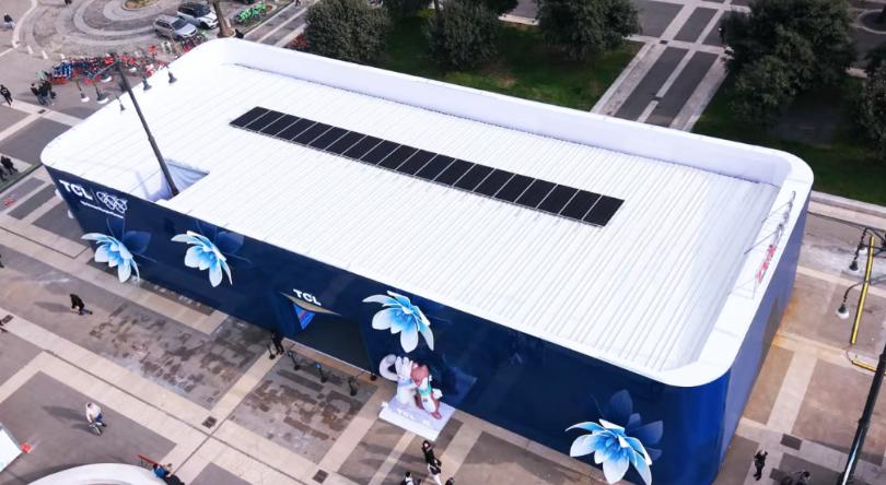 The exterior of the showcase is crafted from blue mirrored glass, inspired by the edelweiss of the Alps. This design seamlessly merges natural imagery with a technological aesthetic, centered around the concept of "It's Your Greatness," symbolizing the spirit of courage and resilience. Behind this dynamic and radiant presence lies the green energy support of TCL PV Tech—the rooftop is equipped with its innovative, high-efficiency photovoltaic modules and energy storage system. Through the practical application of integrated solar and storage, it continuously supplies clean power to the edelweiss-inspired exterior installation, allowing green energy to illuminate the Milano Cortina Olympic Games. This initiative actively embodies the green Olympic philosophy, infusing the Winter Olympics with sustainable, green momentum.
