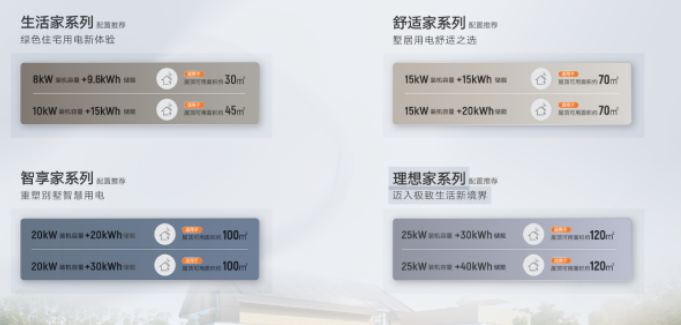 -而 120㎡左右及以上的高端别墅,“理想家系列” 则能全方位匹配高端居住需求,无论是全屋智能设备运行,还是私家泳池、庭院照明等高端用电场景,都能轻松承载,助力用户迈入极致能源生活新纪元;