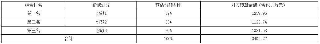 本项目中标人数量为3个,每个中标人对应的中标份额及分配原则如下:
