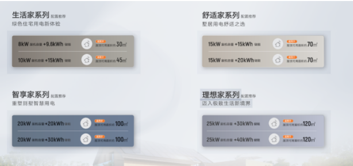 舒适家系列:针对约70㎡屋顶的常规大宅,在保证发电效率的同时,最大化经济性与舒适度。