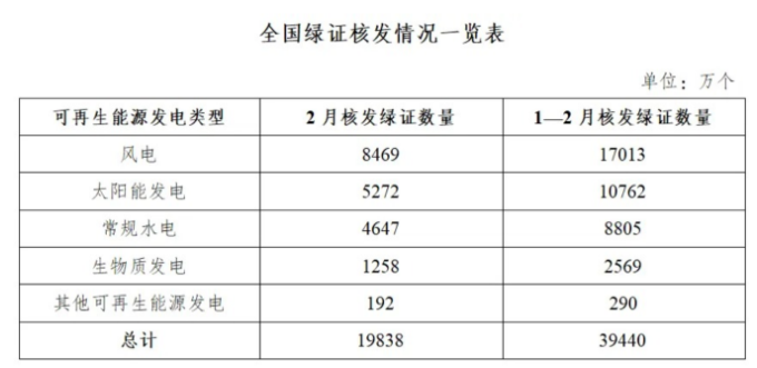 3月19日,国家能源局发布2026年2月全国可再生能源绿色电力证书核发及交易数据。