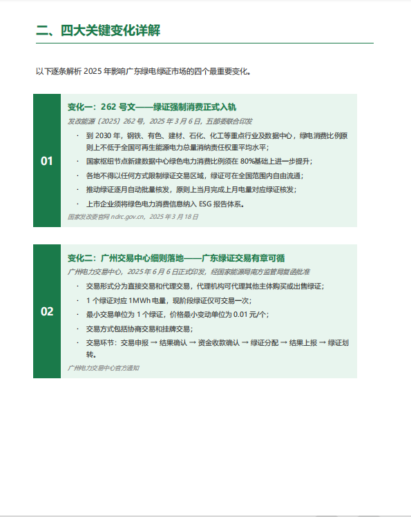 与此同时,2025年国家发改委等五部委联合印发262号文,广州电力交易中心落地绿证交易细则,广东省实施方案明确不重复获益红线……