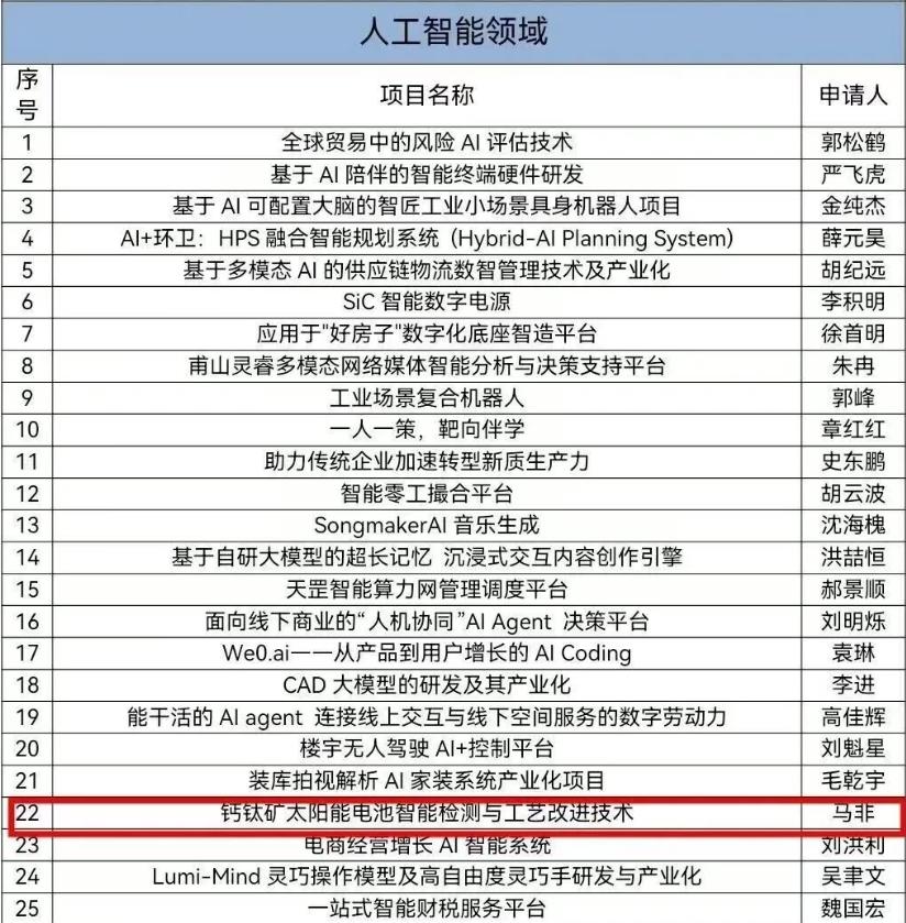 2026年3月23日,杭州市余杭区2026年度第一批创新创业项目评审结果正式公布。光语能源申报的钙钛矿太阳能电池智能检测与工艺改进技术项目,凭借在人工智能与新能源交叉领域的核心技术创新与突出产业化应用潜力,从全区众多参评项目中脱颖而出,成功入选人工智能领域评审通过项目名单。