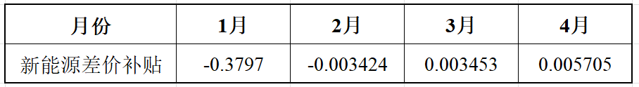 表:重庆市2026年1~4月机制电价分摊(单位:元/kWh)