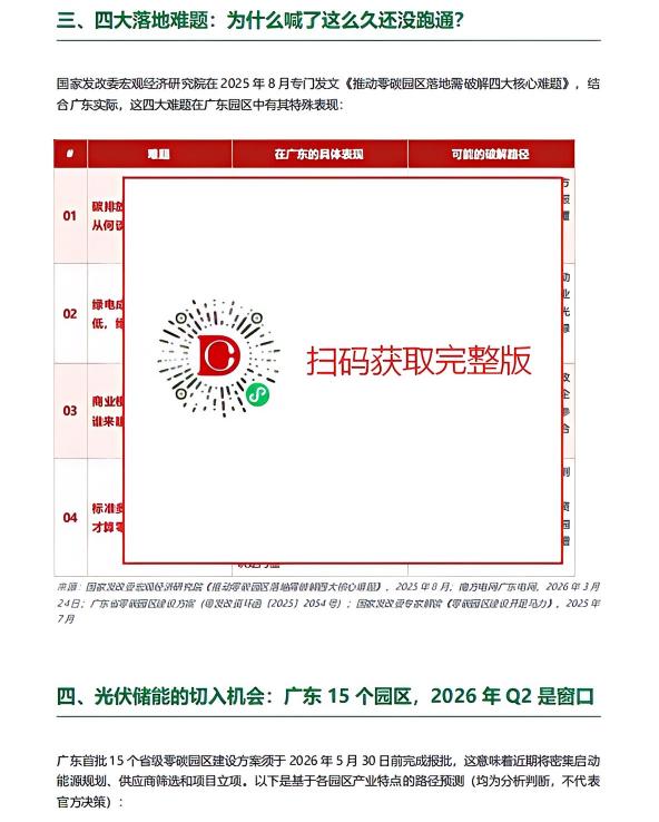 索比光伏网根据广东省级建设方案、国家发改委910号文、发改院官方研究、以及深圳福田近零碳示范区的实际运营数据,梳理了三阶段建设路径、四种落地模式的适用条件与广东可行性对比,以及四大落地难题的破解路径。
