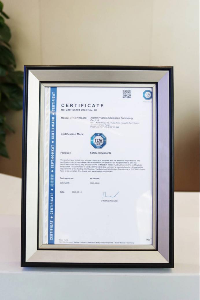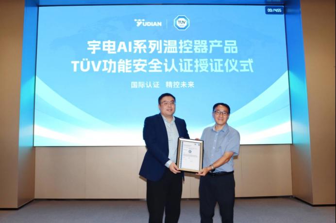 4月15日,宇电温控科技AI系列温控器TÜV南德功能安全认证授证仪式,在宇电厦门翔安产业园圆满举办,TÜV南德意志集团(以下简称“TÜV南德”)正式为宇电AI-85X系列限温温控器颁发功能安全证书,宇电成为国内首个通过该认证的国产温控器品牌。