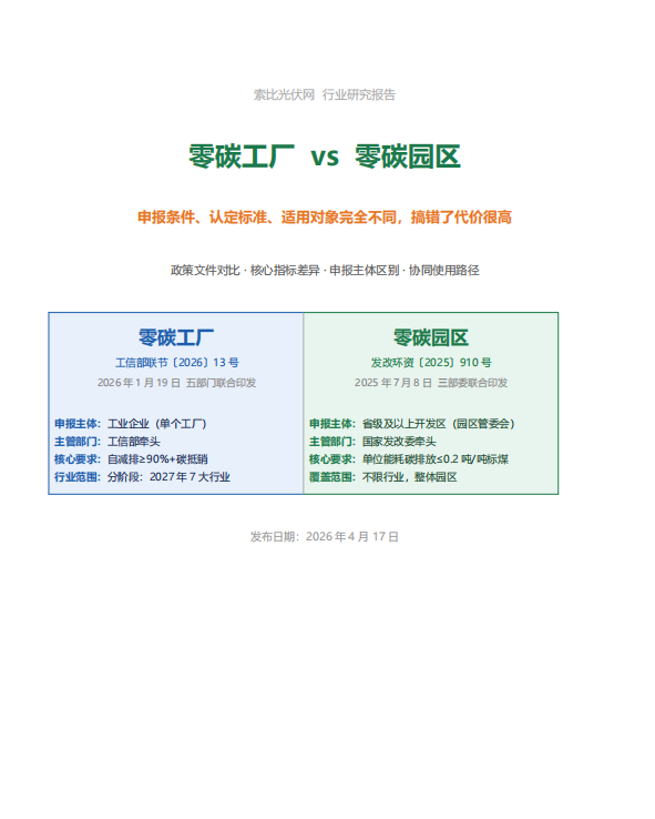 2026年1月19日,工业和信息化部、国家发展改革委等五部门联合印发《关于开展零碳工厂建设工作的指导意见》(工信部联节〔2026〕13号)——这是继2025年7月发改委910号文推出零碳园区政策后,国家在不到7个月内发布的第二份重磅零碳建设文件。