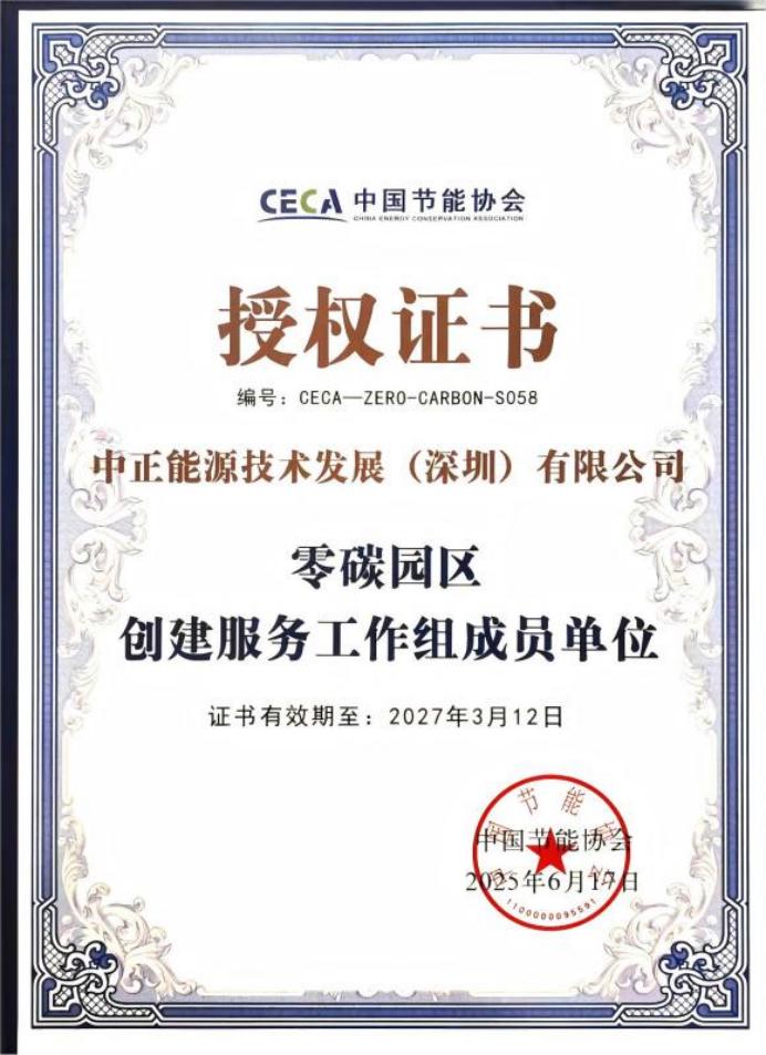 中正能源荣获中国节能协会首批“零碳园区创建服务工作组成员单位”