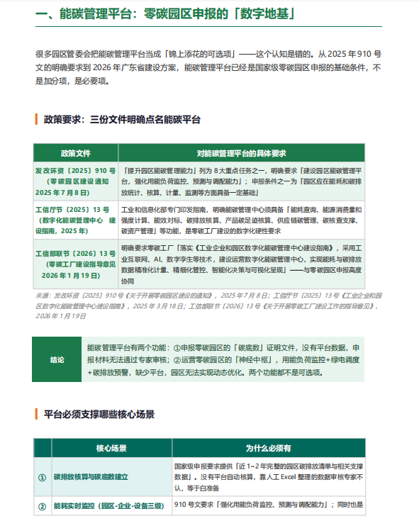 广东零碳园区建设正密集进入规划实施期——15个省级园区、2个已入选国家级,第二批国家级申报窗口预计2026年Q2~Q3开启。而很多园区管委会在这个时候才意识到一件事:能碳管理平台不是锦上添花,是申报的前置条件。